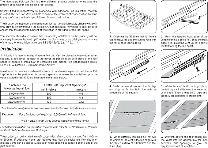 You’ll need 24 Manthorpe G630 Felt Lap Vents, evenly spaced along the roof.